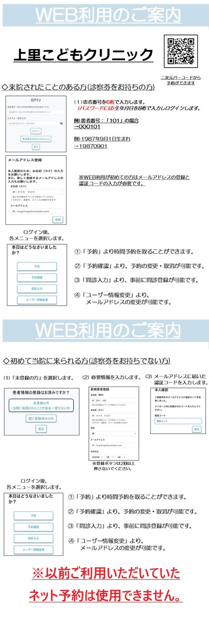 二次元バーコードまたはURLから予約・問診記載ができます。